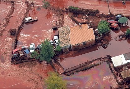 Humic acids in the form of leonardite were used to solve the disaster when the tailings dam broke in western Hungary on October 4, 2010, and toxic red sludge flooded the villages of Kolontár, Devecser and Somlóvásárhely. The disaster claimed ten lives and more than 200 people were injured. Roughly 400 houses and the entire ecosystem of the Marcal River were destroyed.
