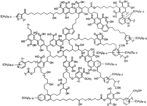 Humic acids are complex polymer molecules that were created by the biological and chemical decomposition of organic substances (mainly plants) lasting millions of years with the access of water and air and the synthetic activity of microorganisms. They occur naturally in soil, mud, peat, water, and in greatest concentration in oxyhumolite, also known as leonardite.