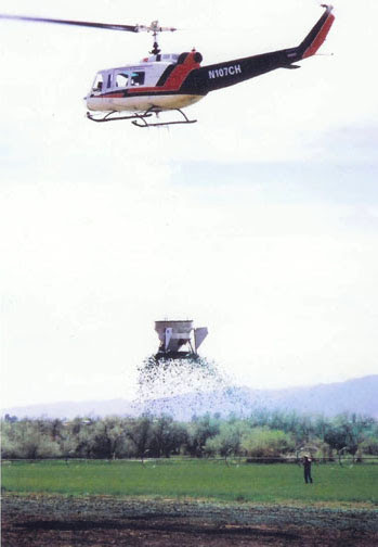 In inaccessible terrains, it is possible to use the application using suspended spreaders under helicopters or using drones. Aerial sprinkling is more effective than ground sprinkling and it is possible to transfer the application in a short time to large areas with difficult to access terrain (forests, rocky areas).